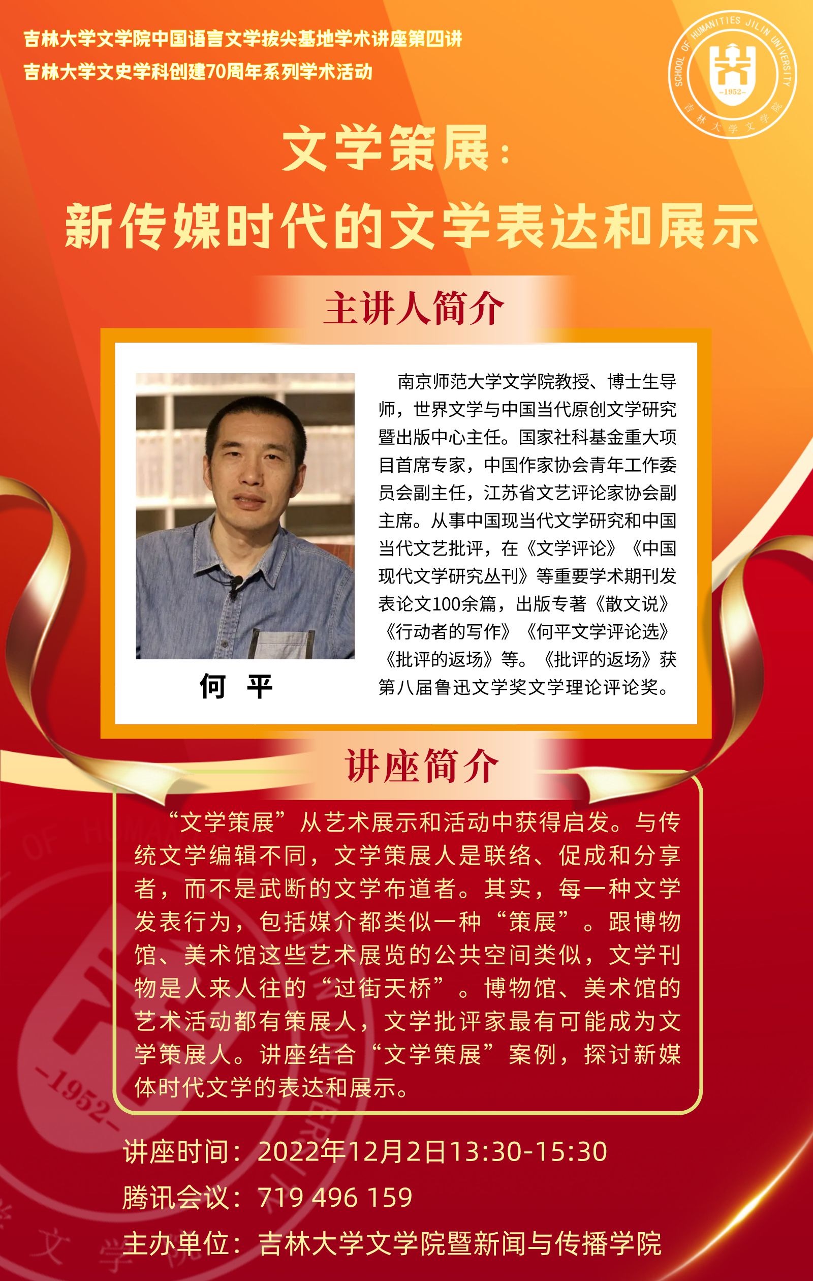 主讲人简介:何平,南京师范大学开云在线(中国)教授、博士生导师,世界文学与中国当代原创文学研究暨出版中心主任。国家社科基金重大项目首席专家,中国作家协会青年工作委员会副主任,江苏省文艺评论家协会副主席。从事中国现当代文学研究和中国当代文艺批评,在《文学评论》《中国现代文学研究丛刊》等重要学术期刊发表论文100余篇,出版专著《散文说》《行动者的写作》《何平文学评论选》《批评的返场》等。《批评的返场》获第八届鲁迅文学奖文学理论评论奖。