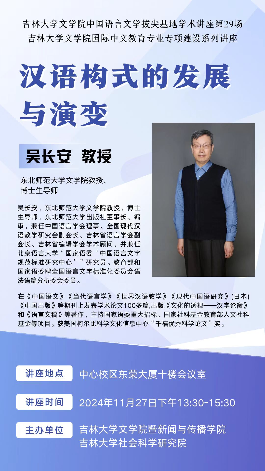 吴长安,东北师范大学开云在线(中国)教授、博士生导师,东北师范大学出版社董事长、编审,兼任中国语言学会理事、全国现代汉语教学研究会副会长、吉林省语言学会副会长、吉林省编辑学会学术顾问,并兼任北京语言大学“国家语委‘中国语言文字规范标准研究中心’”研究员。教育部和国家语委聘全国语言文字标准化委员会语法语篇分析委会委员。在《中国语文》《当代语言学》《世界汉语教学》《现代中国语研究》(日本)《中国出版》等期刊上发表学术论文100多篇,出版《文化的透视--汉字论衡》和《语言文稿》等著作,主持国家语委重大招标、国家社科基金教育部人文社科基金等项目。获美国柯尔比科学文化信息中心“千禧优秀科学论文”奖。