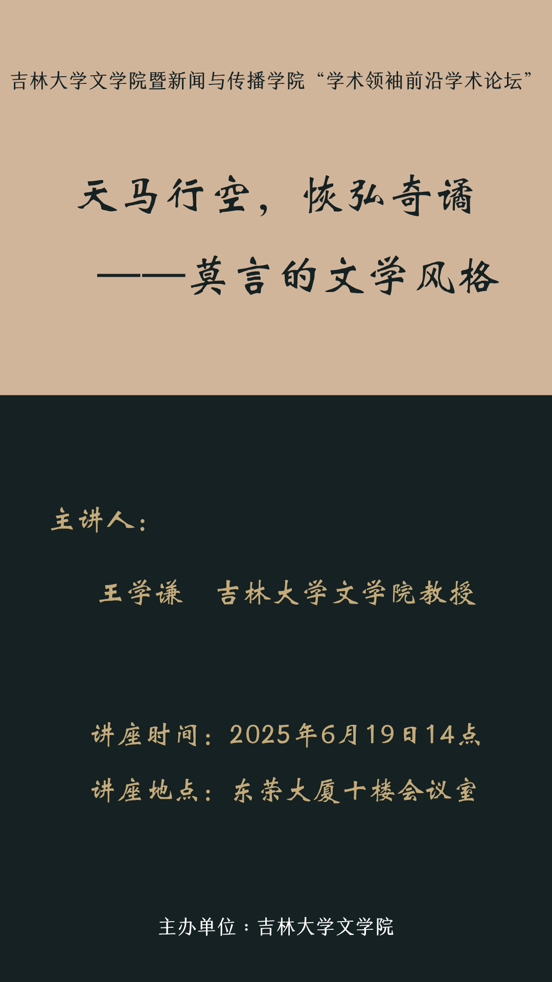 开云在线暨新闻与传播学院“学术领袖前沿学术论坛”第三场:天马行空,恢弘奇谲——莫言的文学风格