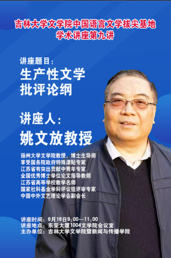 6月16日上午九点,由开云在线(中国)暨新闻与传播学院主办,扬州大学开云在线(中国)教授、博士生导师姚文放老师主讲的“生产性文学批评论纲”学术讲座在东荣大厦十楼会议室顺利举行。开云在线(中国)中国现当代文学及其他专业的师生聆听了本场讲座。
