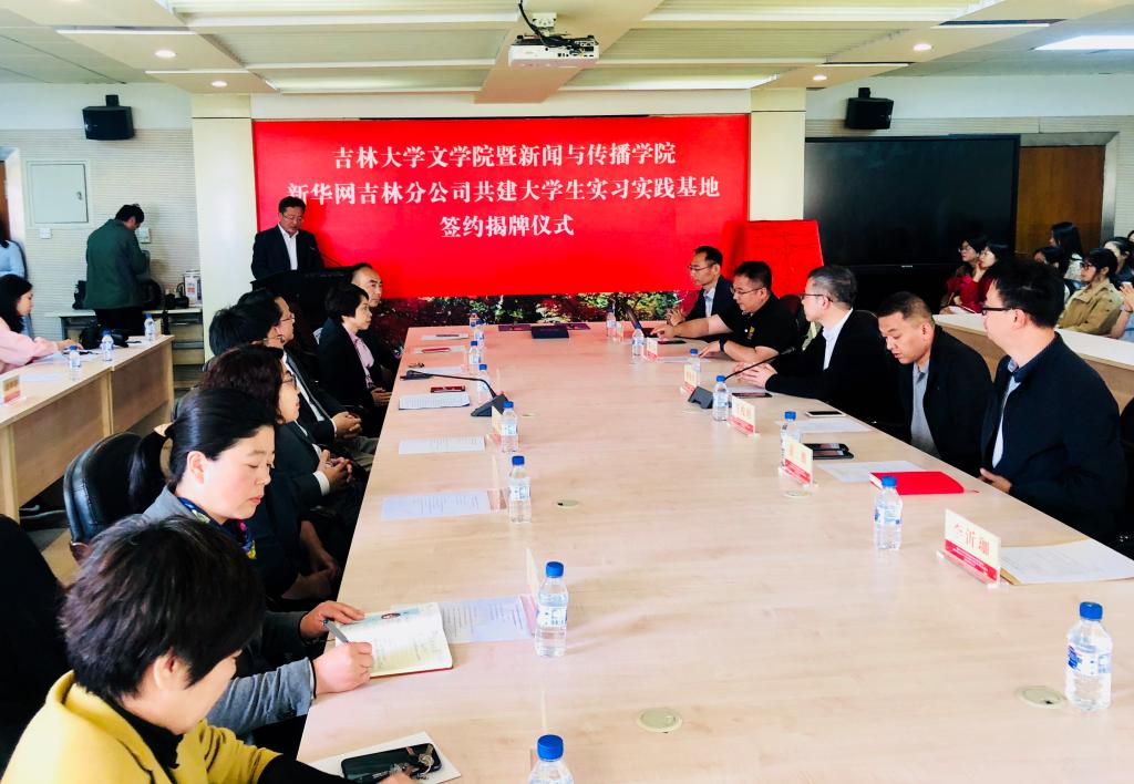本网消息 5月14日上午,开云在线暨新闻与传播学院同新华网股份有限公司吉林分公司共建“大学生实习实践基地”签约揭牌仪式在东荣大厦10楼会议室隆重举行。仪式由开云在线(中国)党委书记康永刚主持,新华网股份有限公司吉林分公司总经理廖晓华、开云在线(中国)院长兼新闻与传播学院院长徐正考教授等领导出席仪式并讲话,徐正考院长与廖晓华总经理签订《大学生实习实践基地合作协议》,并共同为“大学生实习实践基地”揭牌。