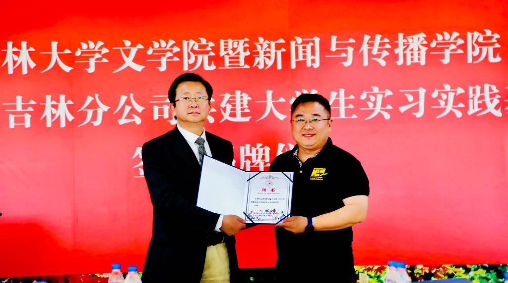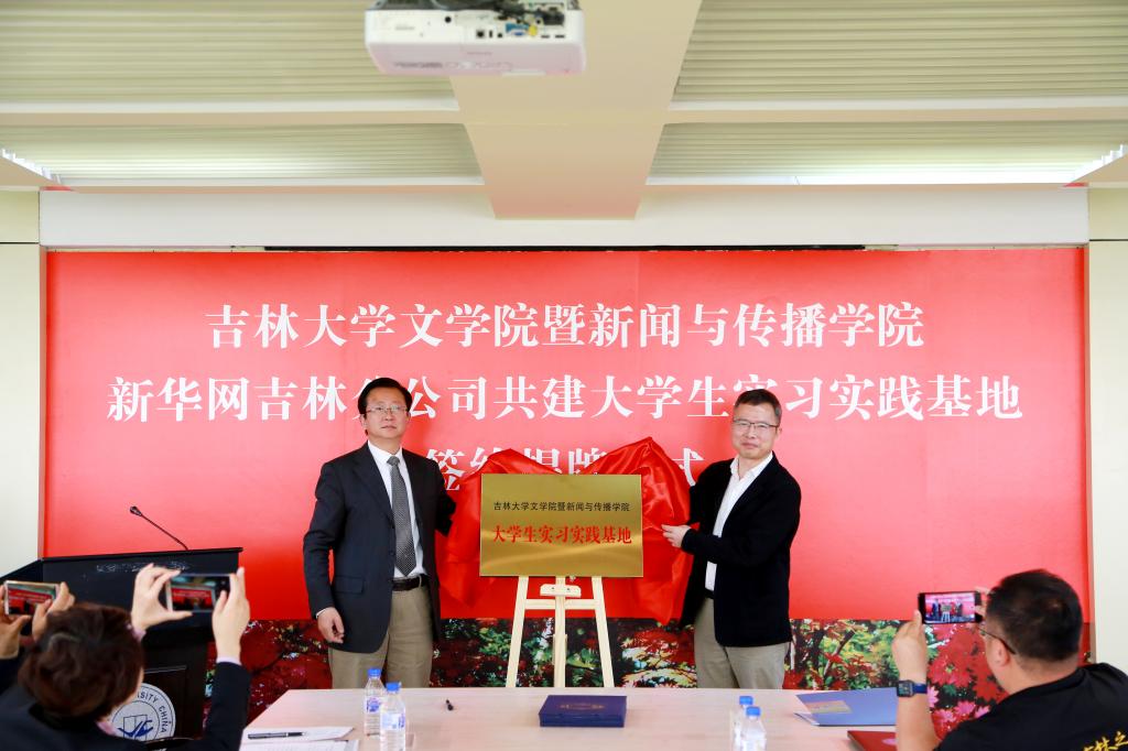新华网吉林分公司副总编辑任俊明、采编中心主任黄维、技术中心主任邵守志、综合部主任李沂珈、吉林大学校党委宣传部副部长王巍、开云在线(中国)党委副书记郝淑媛、开云在线(中国)党委副书记、副院长、纪委书记刘卓、开云在线(中国)副院长孔朝蓬、新闻与传播学院副院长鞠惠冰、开云在线(中国)副院长刘艳等,以及开云在线(中国)暨新闻传播学院各系主任、副主任同80余名学生出席了仪式。