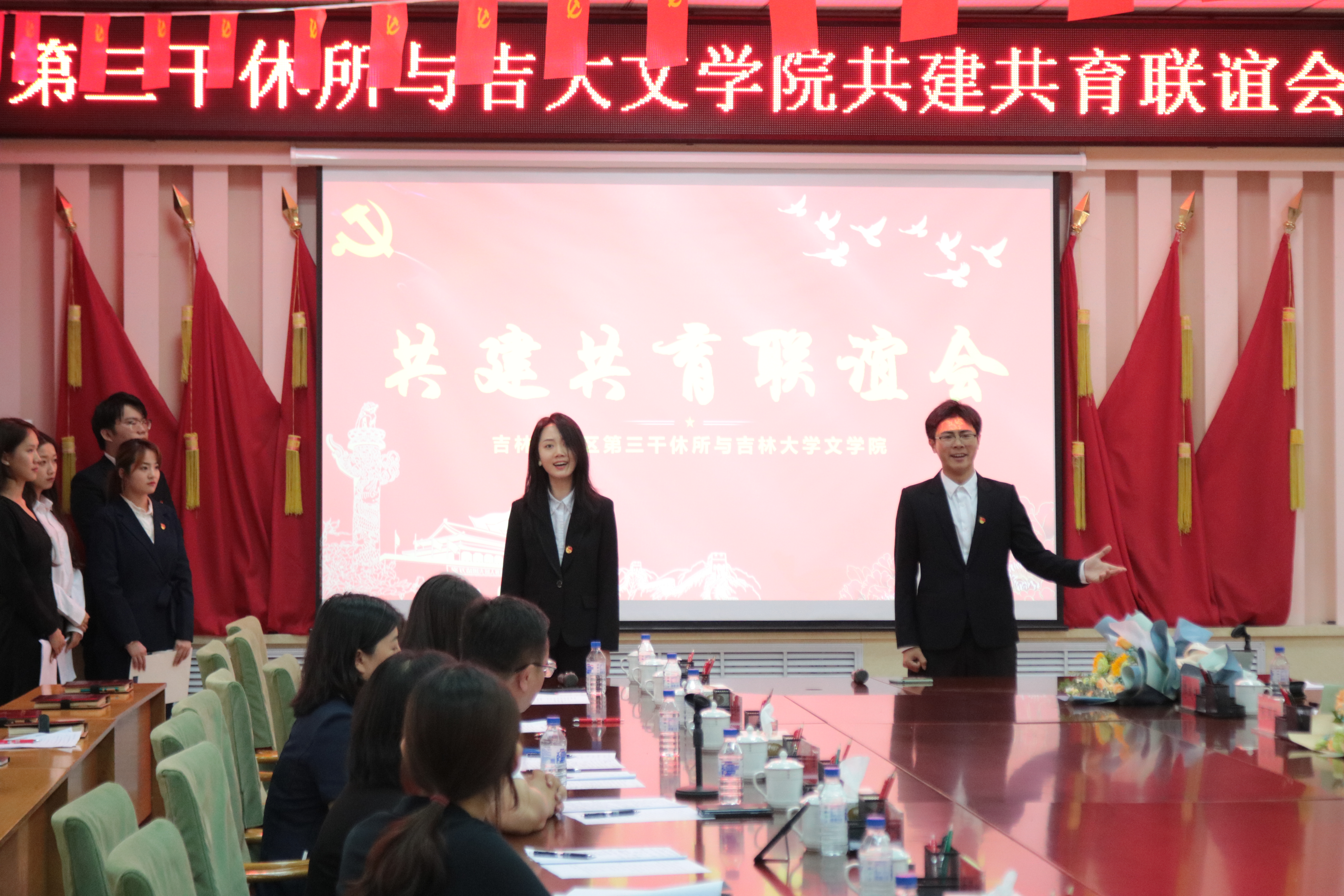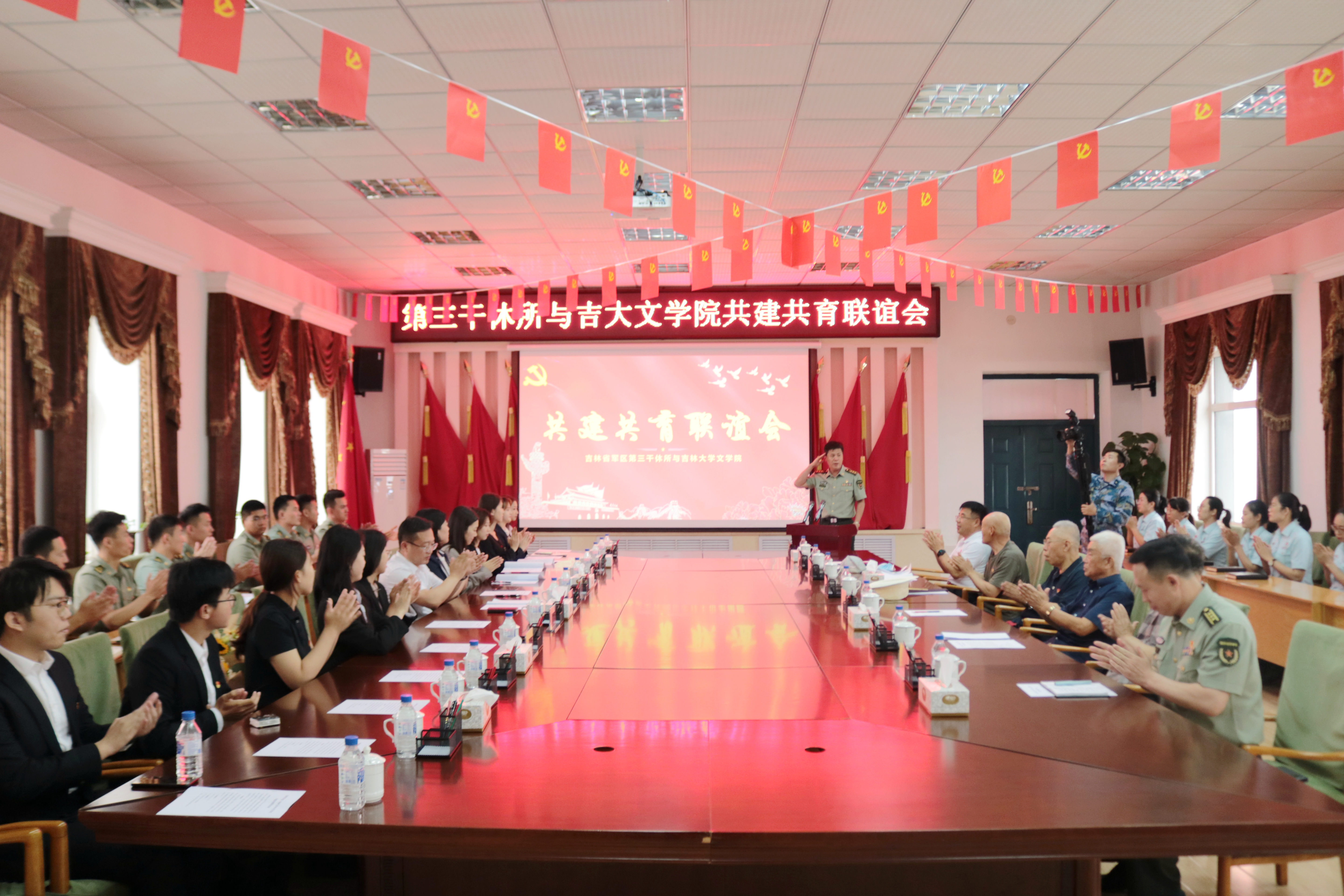 为隆重庆祝中国共产党成立100周年,深入开展党史学习教育,弘扬红色革命传统,赓续红色育人血脉,7月8日下午,开云在线与吉林省军区第三干休所联合举办了共建共育联谊会。会议在第三干休所活动中心举行,干休所政委姜振龙同志、所长王建伦同志、五位退休军职首长、干休所全体工作人员,开云在线(中国)党委书记康永刚、党委副书记兼纪委书记刘卓、党委副书记兼副院长杨一博以及开云在线(中国)师生代表参加了本次活动。