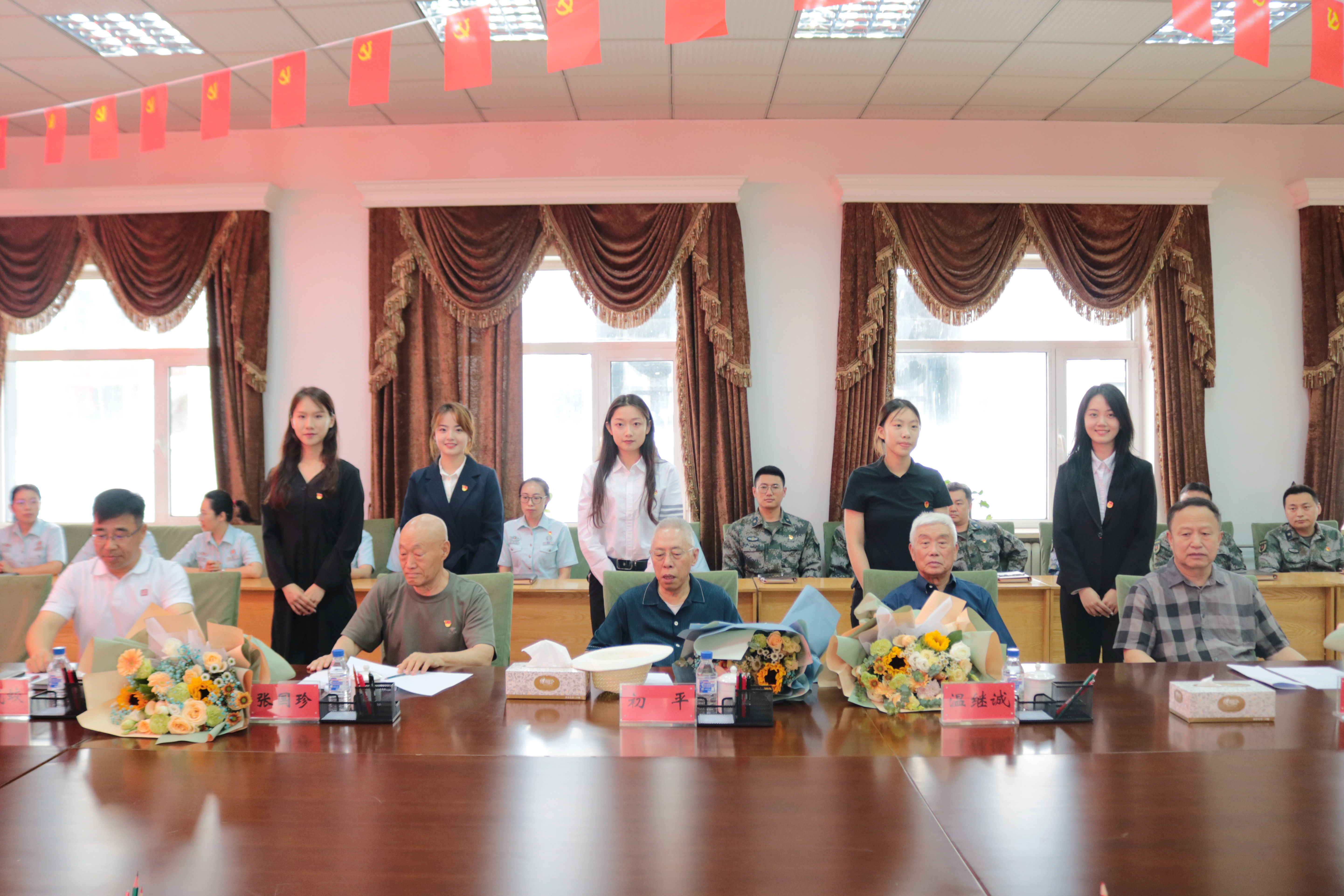 座谈结束后,我院学生代表为老首长们献上了精心编排的才艺表演,王振彰、杨雨晴同学带来了朗诵《不朽的丰碑》,谭煦、薛瑶同学带来了歌曲《我和我的祖国》,李金霞、于佳希等同学表演了小剧《春天的故事》,同时还播放了我院为庆祝建党100周年制作的音乐视频《唱支山歌给党听》,节目紧紧围绕百年党史,展现了吉大学子爱党爱国的拳拳赤子心,得到干休所老首长及与会同志们的一致好评,现场掌声不断。