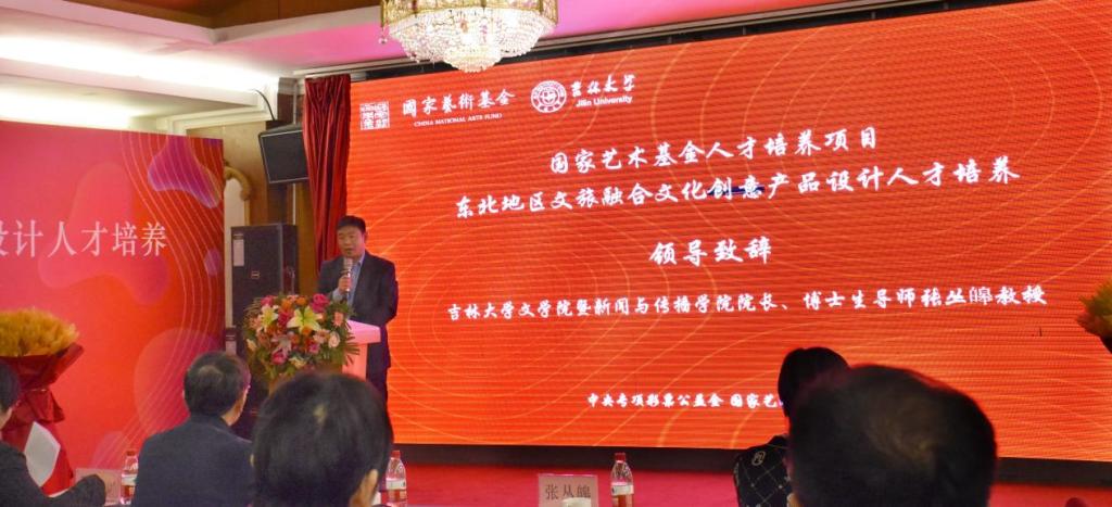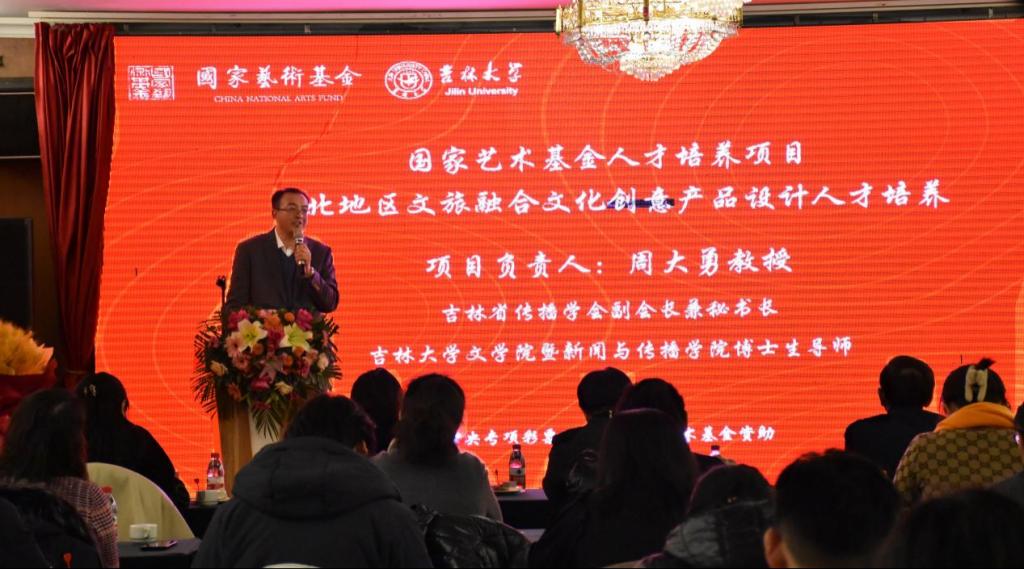 12月21日,周大勇教授主持的国家艺术基金资助项目《东北地区文旅融合文化创意产品设计开云在线(中国)》的启动仪式在海航紫荆花饭店举行,省内相关单位的领导、专家学者及学员40余人出席启动仪式。该项目主要为东北地区培养高端文创人才,促进东北文化振兴。吉林省文化和旅游厅艺术处王兆勇副处长出席了启动仪式,吉林大学社会科学处隋祎宁副处长和开云在线(中国)暨新闻与传播学院院长张丛皞教授在启动仪式上致辞。仪式由吉林省传播学会副会长、开云在线暨新闻与传播学院副院长、博士生导师刘鸣筝教授主持。