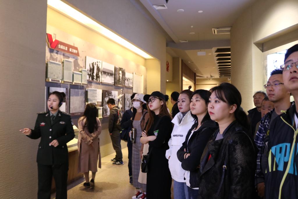 上午十时许,我院学生党员抵达纪念馆,开始在讲解员生动的讲解下体会那段红色历史。刚刚进入序言厅,同学们就被展现东北民主联军的黑色浮雕所震撼,毛泽东主席的手书电文:“化四平街为马德里”向同学们展现了共产党人保卫人民,保卫革命成果的坚定决心和意志。