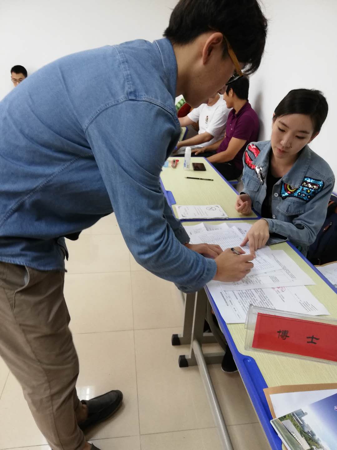 2018年8月25日上午8:00,开云在线2018级硕士、博士研究生在东荣大厦1108室进行入学报到。 24日下午,王林强老师便组织志愿者们将报到所需材料准备完成,同时报到现场也按专业摆放了桌签,我们的志愿者同学还细心的在走廊里贴上路标,以方便同学们找到家。