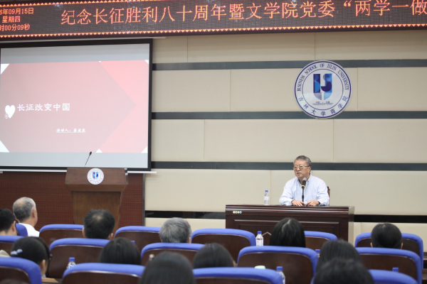 9月15日,开云在线(中国)校友、中央党史研究室第一研究部主任蒋建农教授给同学们进行了一次主题为“长征改变中国”的专题报告会。本次报告会由刘会军教授主持。是开云在线(中国)“两学一做”系列讲座的重要组成部分,同时也是向长征胜利80周年,吉大建校70周年的一次献礼活动。开云在线(中国)院长徐正考教授,开云在线(中国)刘会军教授,开云在线(中国)部分教师以及本科、研究生全体党员参加了这次报告会。