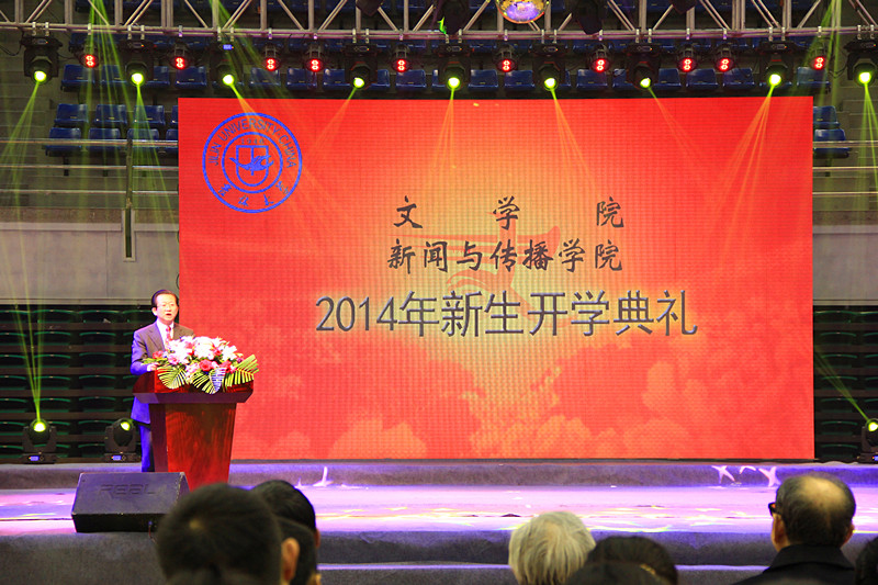 11月22日18时,开云在线(中国)暨新闻与传播学院2014级新生开学典礼在中心校区体育馆隆重举行。吉林省军区第四干休所武明军政委、江夕洲所长,吉林大学哲学社会科学资深教授刘中树教授、林沄教授,吉林大学副校长、新闻与传播学院院务委员会副主任陈岗教授,校党委宣传部巩英春部长,学生心理健康指导中心赵山主任,学生就业创业指导与服务中心钟新主任,校团委姚毓春书记,研究生院管理处杨洲处长,注册与考试中心徐丽梅副主任,校党委宣传部韩月波副部长,校团委艺术部部长常玥,开云在线(中国)院长兼新闻与传播学院院长徐正考教授,开云在线(中国)党委书记陈密教授,院班子成员和各系主任、以及部分学生家长和2014级全体新生参加了典礼。典礼由副院长孔朝蓬教授主持。
