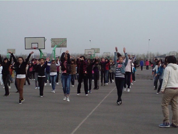 文艺表演向来是我校运动会上一大亮点,也是我院在运动会上的优势项目,体新、编导、播音等几个班的女同学每天清晨和夜晚都坚持不懈的练习着,迎着乍暖还寒的春风,有时还伴随着绵绵细雨,虽苦虽累,但是她们始终保持着饱满的热情,只为在运动会文艺表演上拔得头筹,为我院增光添彩。而10级的辅导员李老师也亲临训练场为同学们进行指导并加油打气,相信经过刻苦练习,同学们一定能在全校师生面前一展文院风采。