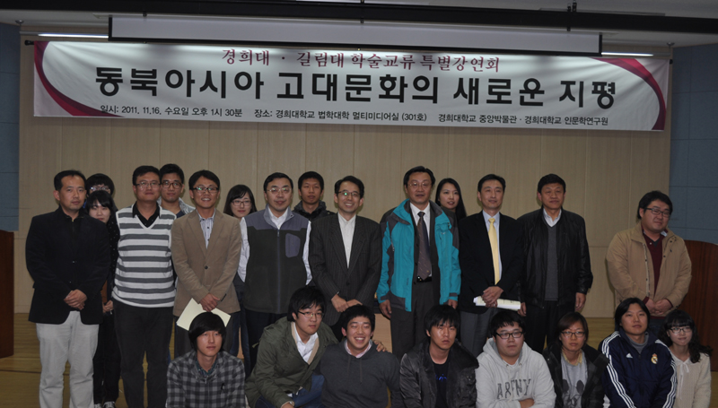 应韩国庆熙大学校中央博物馆的邀请,吉林大学边疆考古研究中心主任朱泓教授和开云在线(中国)副院长赵宾福教授以及成璟瑭副教授于2011年11月15日到20日对韩国进行了为期6天的访问,并于11月16日出席了在由庆熙大学校中央博物馆与庆熙大学校人文学研究所联合举办的“东北亚细亚古代文化的新起点”学术讲演会,同行的还有吉林省文物考古研究所所长宋玉彬研究员以及正在吉林大学边疆考古研究中心进修的庆熙大学校中央博物馆研究员黄在勲。