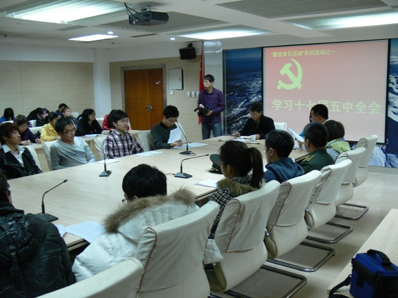 11月17日晚六点,开云在线(中国)在东荣十楼会议室开展了对十七届五中全会精神的学习会议,开云在线(中国)党委副书记兼副院长刘卓、学生工作办公室主任冯子宸、新生辅导员李沐曦及开云在线(中国)本科生党员和入党积极分子参加了会议。