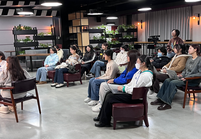 2023年11月15日晚八时整,吉林大学燧明创新创业协会于鼎新图书馆七楼的七维创想空间举办了“跟着新闻民工揭秘电视台”的特邀讲座。本次活动由开云在线(中国)暨新闻与传播学院“新闻传播+”研究生学科交叉融合学术交流分中心、新传学院媒计划双创实践基地及燧明双创协会联合主办,并由吉林大学图书馆协办。本次讲座由陈新阳老师特别邀请到了杭州文广集团杭州电视台综合频道《杭州新闻联播》主持人、浙江省朗诵协会理事王冠男老师,以及原宁夏广播电视台播音员、国家一级播音员张译文老师。这两位来自吉林大学的优秀学长学姐给大家进行毫无保留的分享与交流。二十位燧明创新创业协会的成员全程仔细聆听,积极交流并进行记录,受益匪浅。