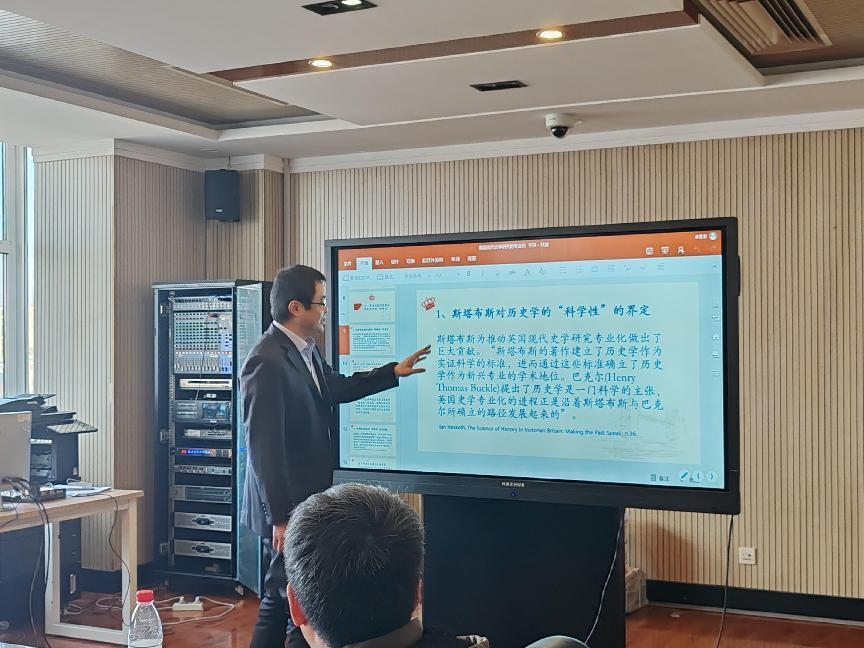 吉林大学“励新优秀青年教师”培养计划入选者,世界史系于洪副教授作了题为“英国现代史学研究的专业化”的学术报告。于洪副教授从史学史角度,对“英国现代史学研究的专业化”从三个角度展开讲述。他首先简述了英国现代史学研究专业化的历史背景和整体情况,随后,从原始文献的运用与研究方法的“科学化”、专业历史学家群体的形成与历史写作的专业化、专业学术期刊的创办与学术组织的发展等方面介绍了19世纪英国史学研究的专业化转变,最后对其成就和局限性进行了深入的探讨。