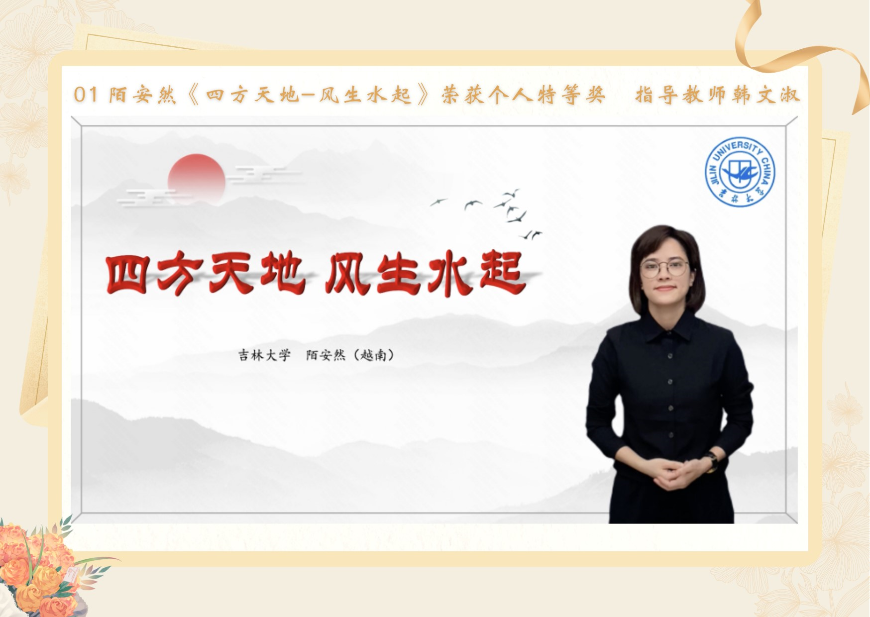 开云在线/国际语言学院师生在激烈角逐中再创佳绩,共有11件作品获奖,包括“文化类-学生组(个人赛)”特等奖1项、二等奖3项、三等奖2项;“文化类-学生组(团体赛)”二等奖1项、三等奖2项目、优秀奖2项。另外,吉林大学荣获“最佳组织奖”,韩文淑教授获得“最佳指导教师奖”,充分展现了我校国际中文教育专业的培养成效。