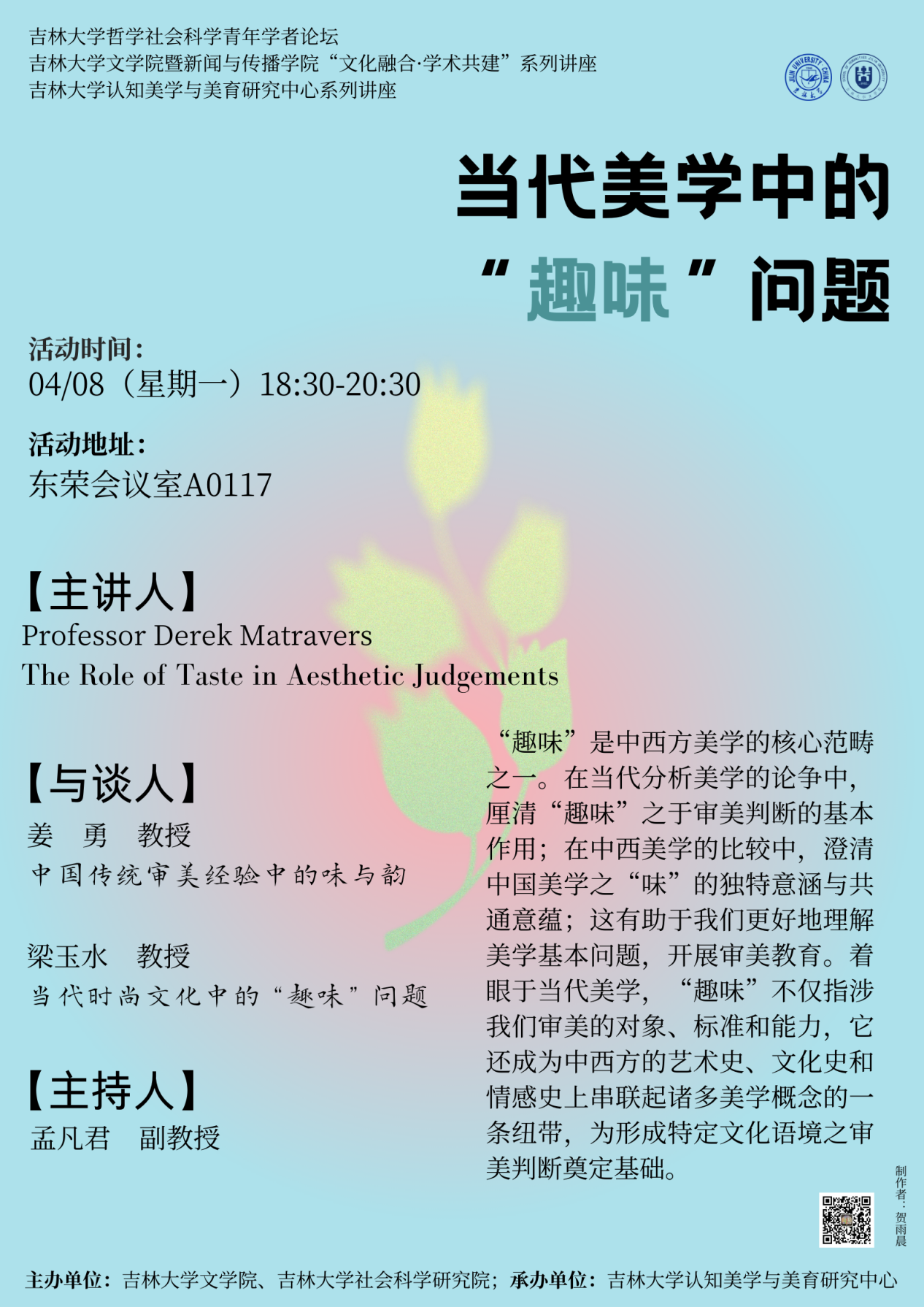 (Derek Matravers教授讲座题为《“趣味”在审美判断中的作用》)