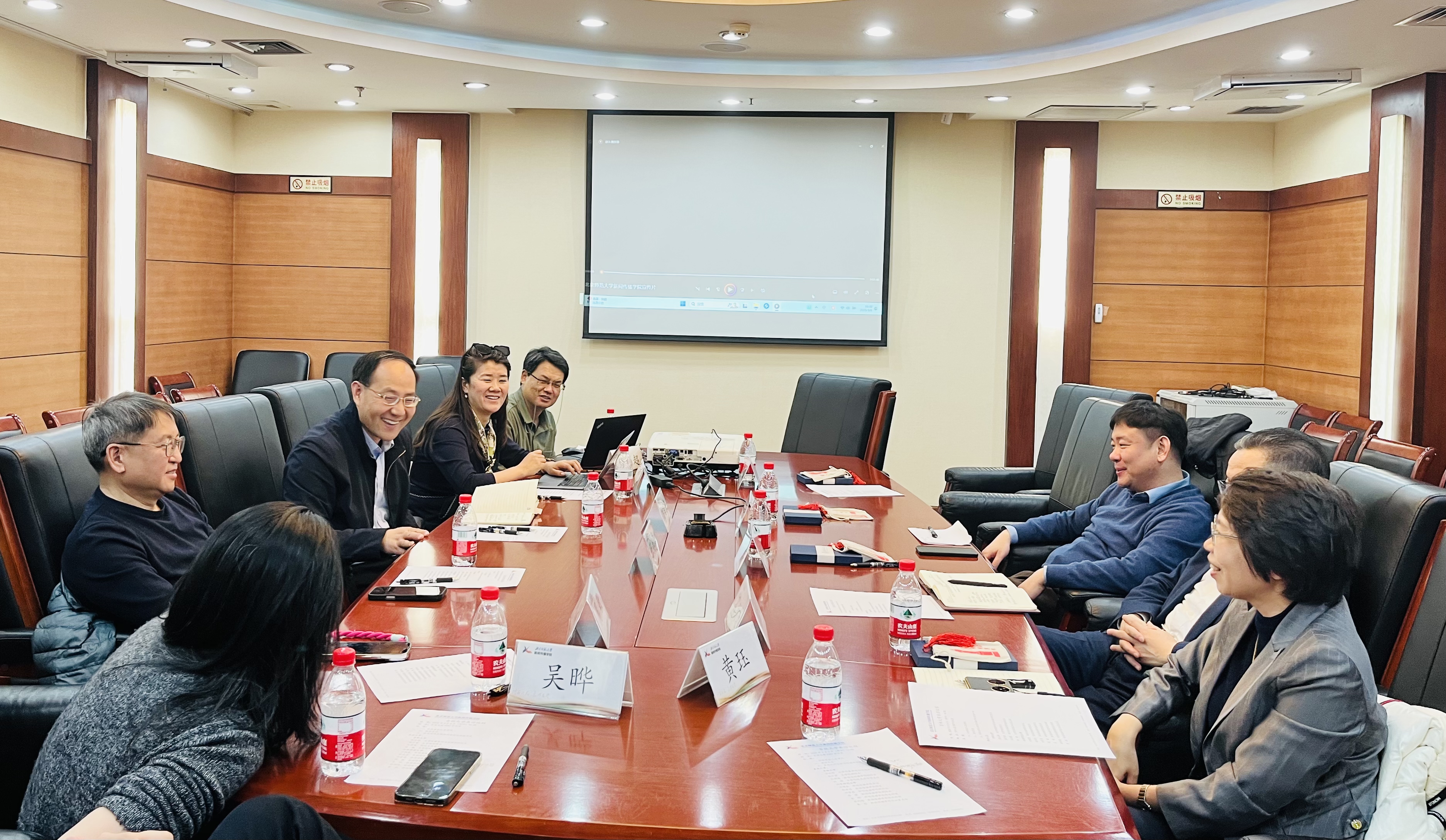 在北京师范大学开云在线(中国),副院长卜师霞、张莉、李小龙出席会议,双方就创意写作学位点建设、学科目录与学科布局调整,研究生学科命题等问题展开深入交流。在北京师范大学新闻传播学院,学院书记方增泉,院长张洪忠,副书记祁雪晶,副院长周敏,院长助理吴晔、修利超,院办主任黄珏出席会议,双方围绕科研国际化、计算传播学学科建设和马新观课程体系建设等议题进行了深入的探讨,随后学院一行参观了北京师范大学新闻传播学院新文科实验室。
