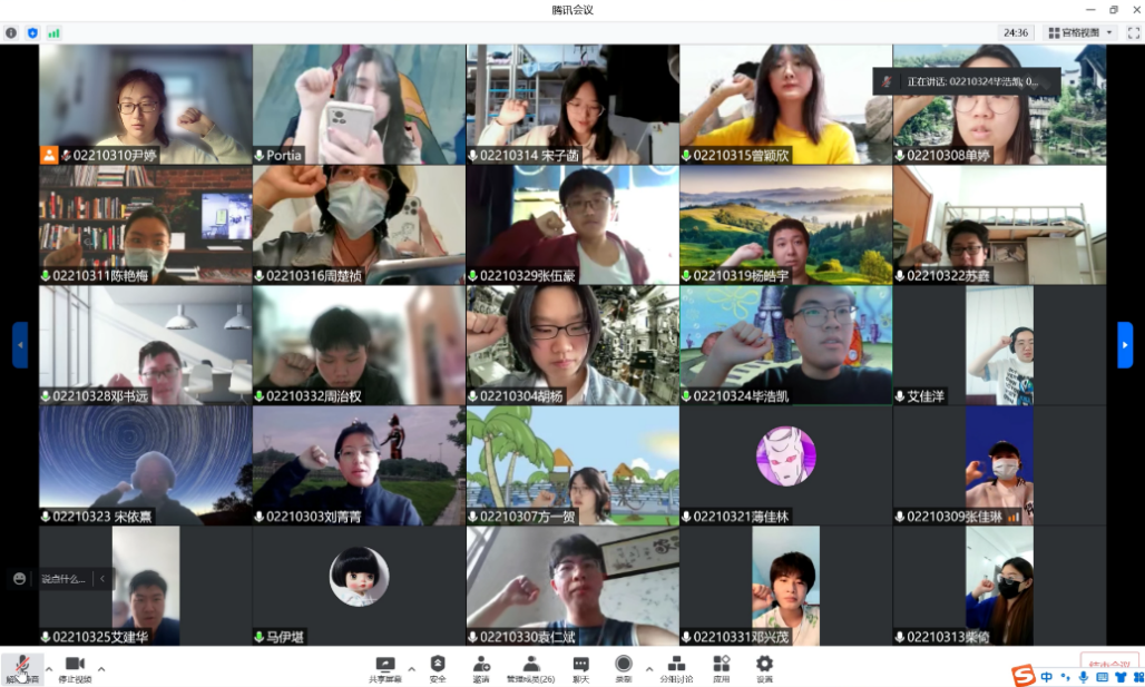 新闻传播学类2021级团支部5月团日活动通过线上方式进行。全体团员同学在两位团支书的带领下,通过腾讯会议,共同重温了入团誓词,并学习了习近平总书记在中国人民大学的重要讲话精神以及对青年的寄语,共同庆祝了共青团成立100周年。同学们参与积极度高,深切体会到了习近平总书记对青年大学生的殷切期望。活动首先由5位优秀团员代表领誓,全体团员重温了入团誓词,回忆入团初心。宣誓结束后,大家又共同交流学习了习近平总书记的重要讲话精神以及对青年的寄语。本次团日活动,充分体现了每个同学的热情,调动了同学们的融入集体活动的积极性。同学们热情澎湃,积极响应团组织的号召,遵守防疫规定,这充分体现了同学们的团结意识和强有力的凝聚力。