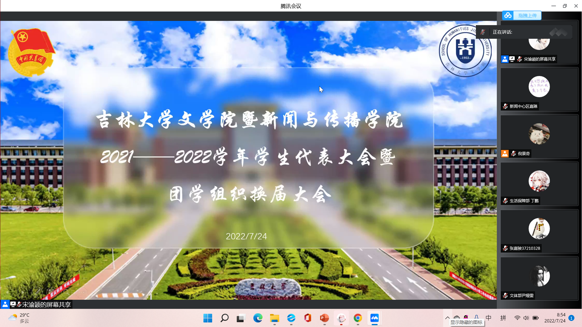 为深入贯彻落实共青团中央印发的《关于推动高校学生会(研究生会)深化改革的若干意见》和《加强和改进新时代学联学生会工作实施方案》精神,开云在线(中国)暨新闻与传播学院于7月24日上午9时,通过腾讯会议召开2021-2022学年学生代表大会暨团学组织换届大会。此次大会由院学生会主席团共同主持,李芊满老师、于航老师、曲昭琦老师、王振彰老师、团学组织各部门负责人和100余名学生代表参会。
