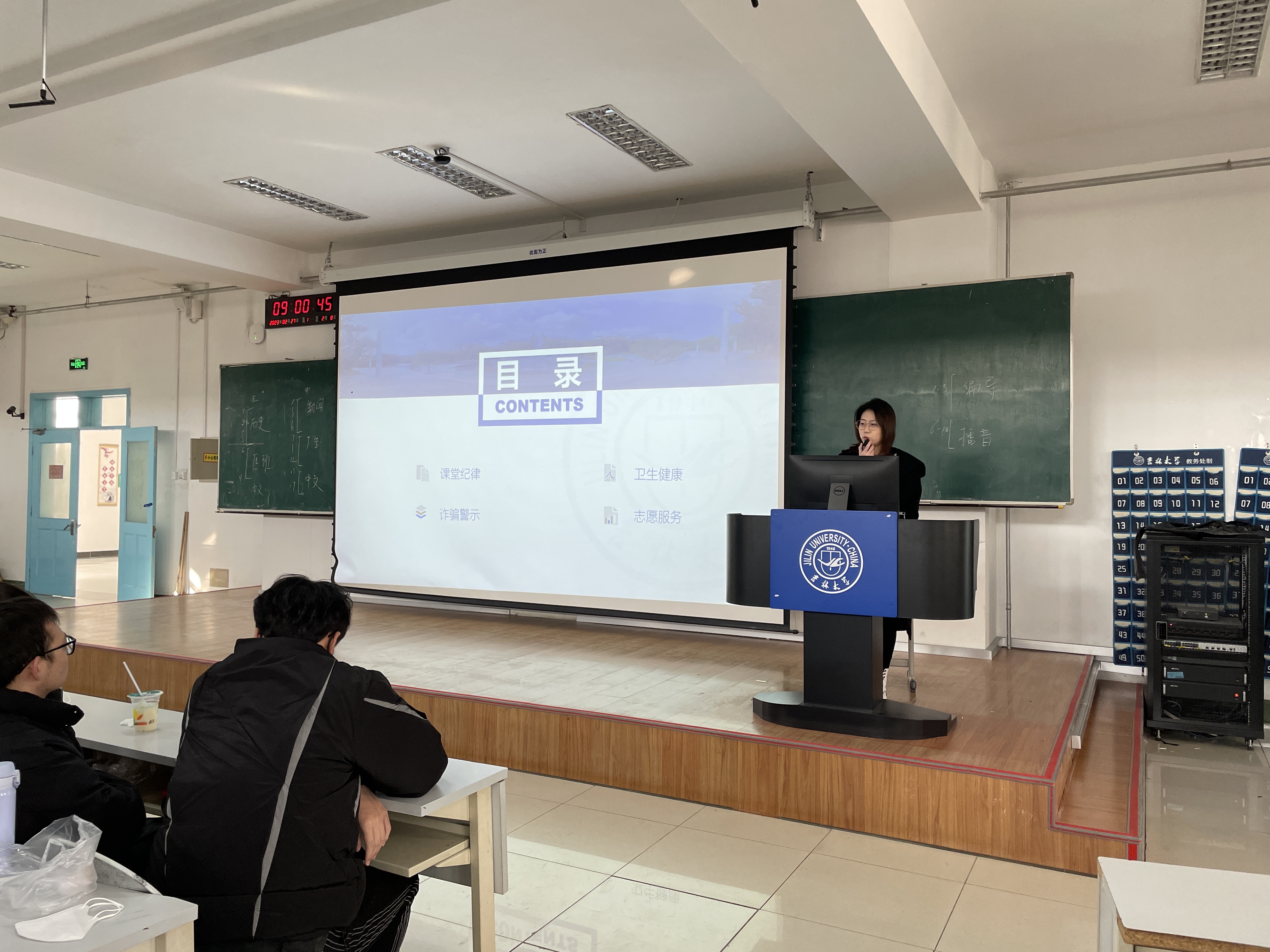 会议包含以下几个方面:第一,严肃课堂纪律。袁老师宣读了《吉林大学本科学生违纪处分规定》并强调了开云在线(中国)暨新闻与传播学院对课堂纪律的要求,明确了违反纪律的严重后果,提醒同学们劳逸结合、努力学习。第二,重视卫生健康。春季是传染性疾病的多发季节,袁老师提醒同学们注意关注自己的健康状况,早发现,早治疗,保持寝室环境的整洁,不使用违规电器,勤通风。第三,严防电信诈骗。袁老师提示大家注意自己的人身和财产安全,不轻易透露自己及家人的个人信息,收到有异议的信息时要保持警惕,及时核实。第四,介绍志愿时长组成。袁老师向大家介绍了志愿服务时长的计算考评办法,提醒大家积极参与有意义、有质量的志愿服务活动,获取志愿服务时长。