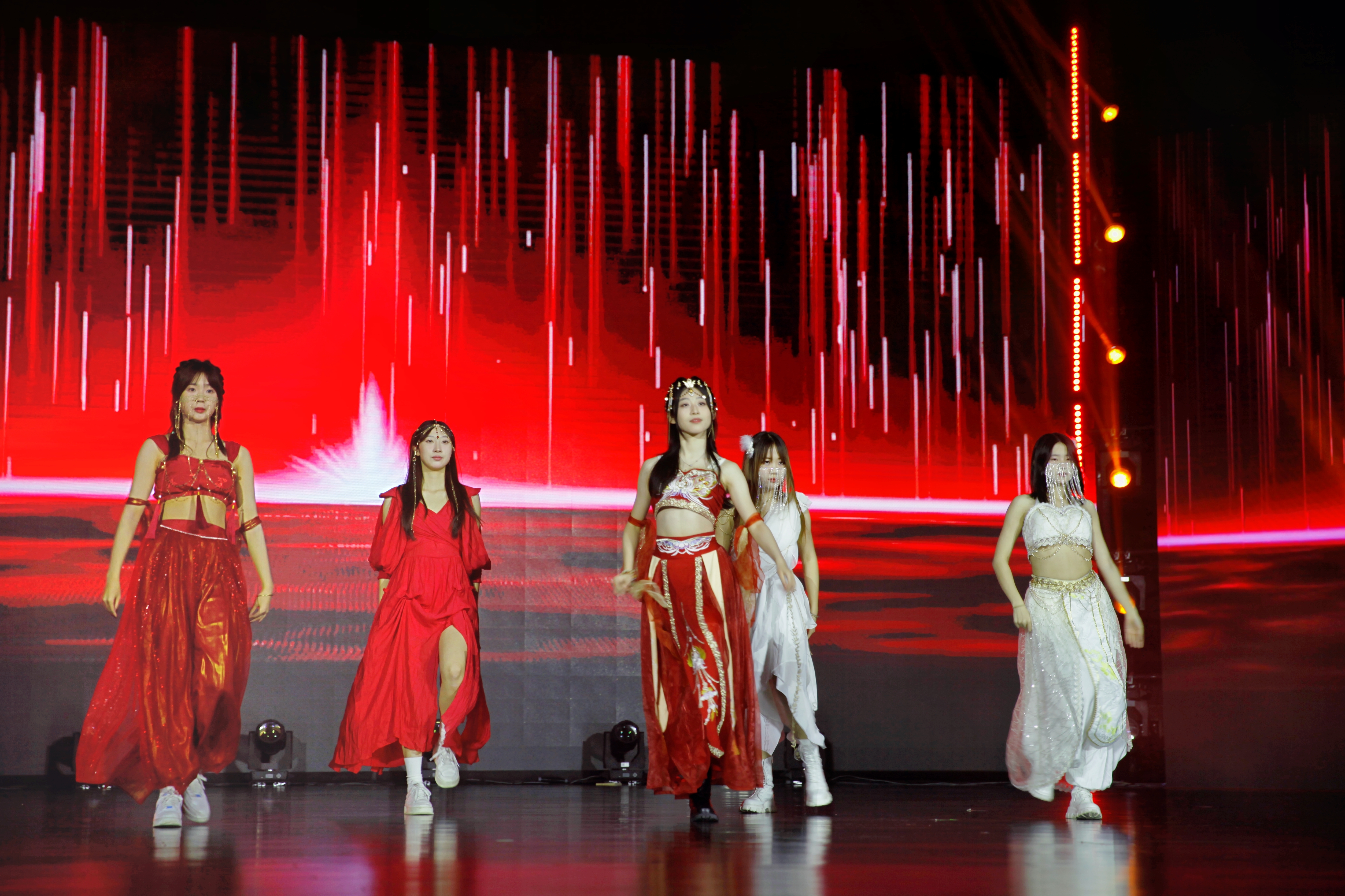 晚会在开场视频《最美镜头》中拉开帷幕。跟随镜头,观众重温了学院师生丰富多彩的在校日常生活,在邀请函的传递中,晚会精彩启幕。开场舞《火花》点燃全场,带领观众走进第一篇章——源:文传之缘。古风歌曲《字正腔圆》荡气回肠,豪迈大气,为观众展现了中华文化的壮美诗篇;在演员生动形象的演绎中,小品《时间都去哪了》让观众切身体会到时间的流逝,并提醒同学们要珍惜时间,不负青春韶华;体现江南水乡温婉情怀的古典舞《红马》,让观众随着舞蹈的韵律,感受杜甫笔下“舞霸龙楼人去尽,千人空限其生喧”美人之舞的景象。