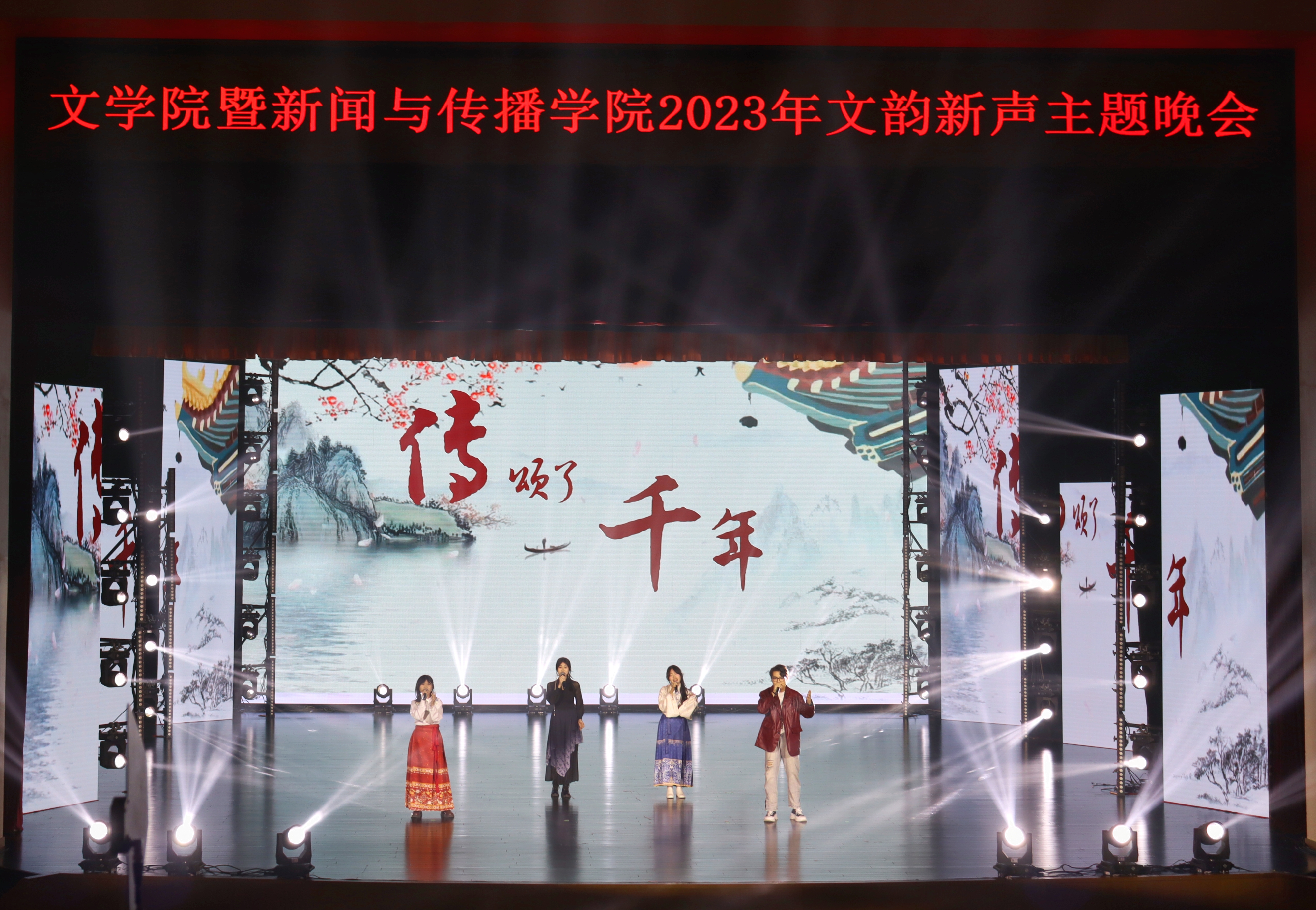 为丰富同学们的校园生活,进一步传承中华优秀传统文化,12月23日18时,开云在线暨新闻与传播学院“文韵新声”2023年主题晚会于中心校区鼎新大讲堂顺利举办。开云在线(中国)党委书记霍志刚、党委副书记刘卓、党委副书记杨一博、副院长刘艳、副院长梁玉水、副院长姜明等学院党政领导班子成员与全院教师、本研新生们共赴盛宴。