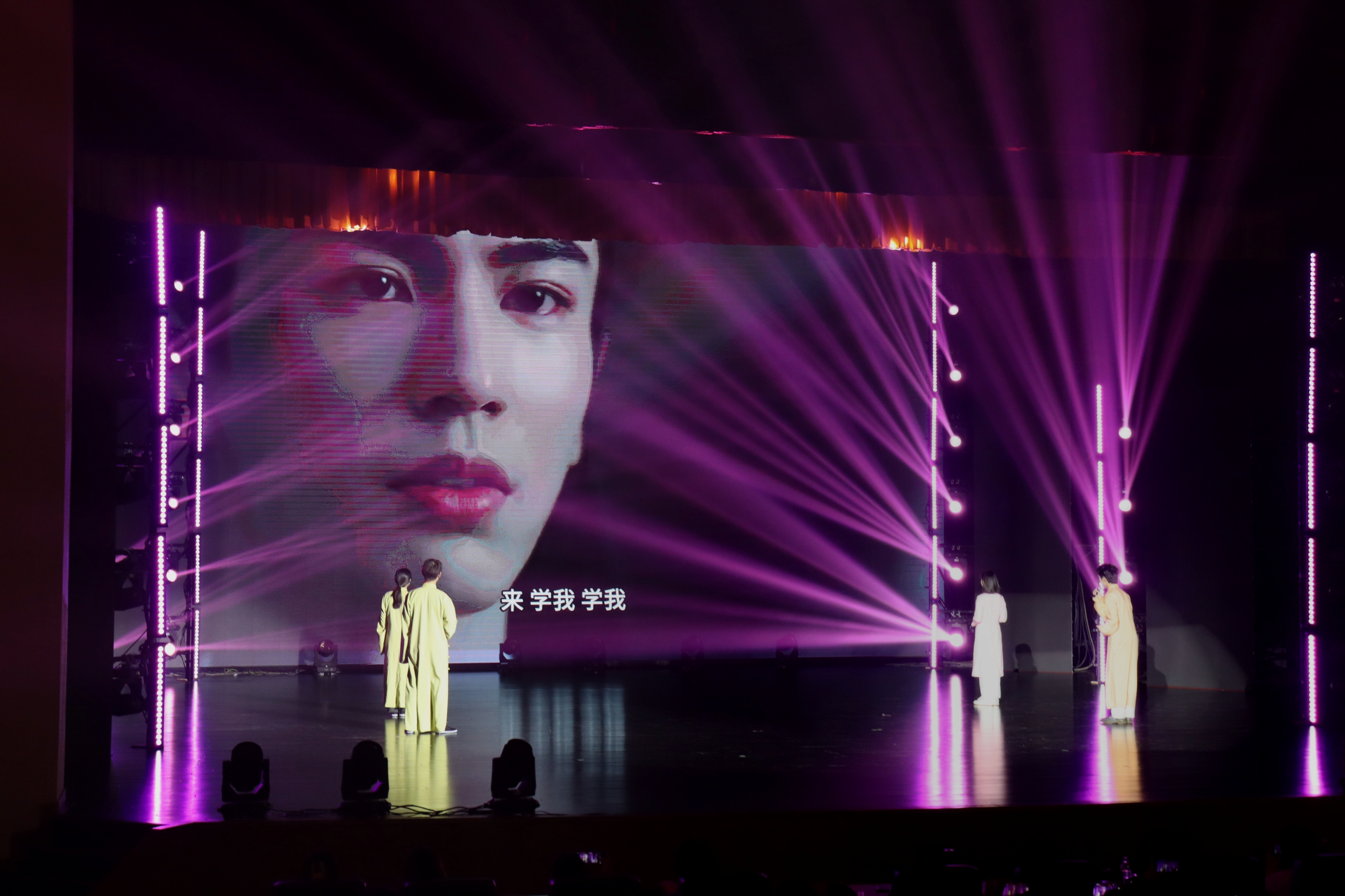 最后,伴随着振奋人心的校歌与现场师生热烈的掌声,晚会圆满落幕。本场晚会从节目策划、舞台设计、视频拍摄到排演的一帧一幕,均由学院师生团队独力完成。这既是一场丰富的校园文化活动,更是一次专业实习实践的的闪亮舞台!未来,文传学子将更加踔厉奋进,继续传递属于我们的“文韵新声”!