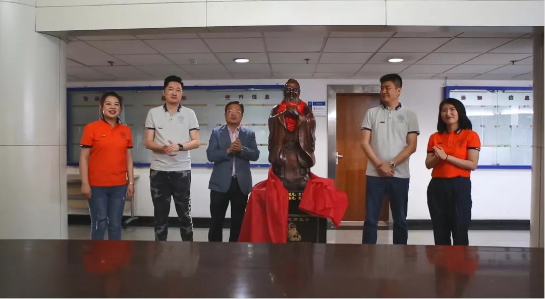 座谈会结束后,参会一行人举行了校友赠礼的揭幕仪式。精雕细刻、栩栩如生的孔子像矗立在十楼大厅内,正像我院从历史走向未来,在时间的长河中不断修身自省,并以诲人不倦的教学精神将同学们培养成才。