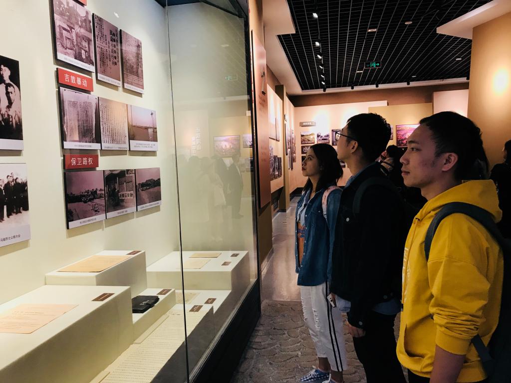 师生们仔细阅读观看了展览中的文字、图片以及文物史料,博物院里抗联战士爬雪堆、围坐在冰天雪地里取暖等复原场景,使师生们重温了那艰难困苦的战斗岁月。中共吉林特支第二交通站隐藏文件用的花瓶、铁血少年营单刀、杨靖宇将军牺牲的场景、陶铸送给佔全景的驳壳枪……一件件珍贵的展品,无声却有力的见证着吉林人民的革命精神与英雄伟业,一幕幕历史场景,使师生们深感今天的幸福生活来之不易,更加坚定了理想信念。