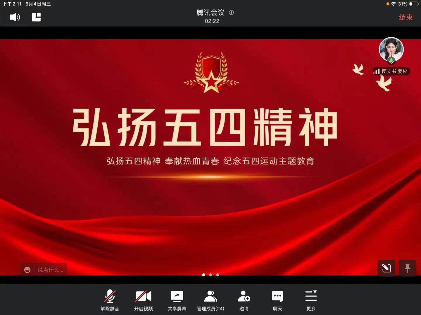 2022年5月4日,开云在线(中国)硕士研究生各党支部线上开展“弘扬五四精神”主题活动,全体党员和团员共同学习习近平总书记在中国人民大学考察时的重要讲话精神并共同观看红色电影,起到了激励和引导广大学生党员和团员进一步弘扬〝爱国、进步、民主、科学”的五四精神的作用,极大地增强全体党员和团员同志的社会责任感和历史使命感。